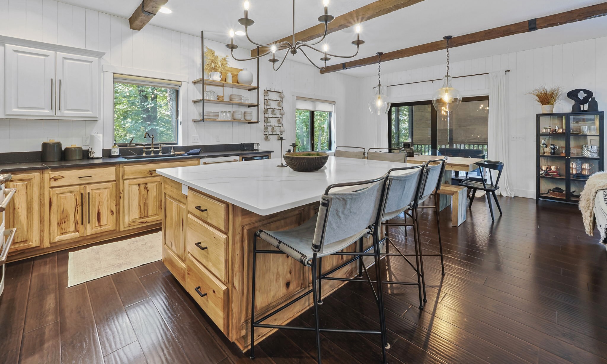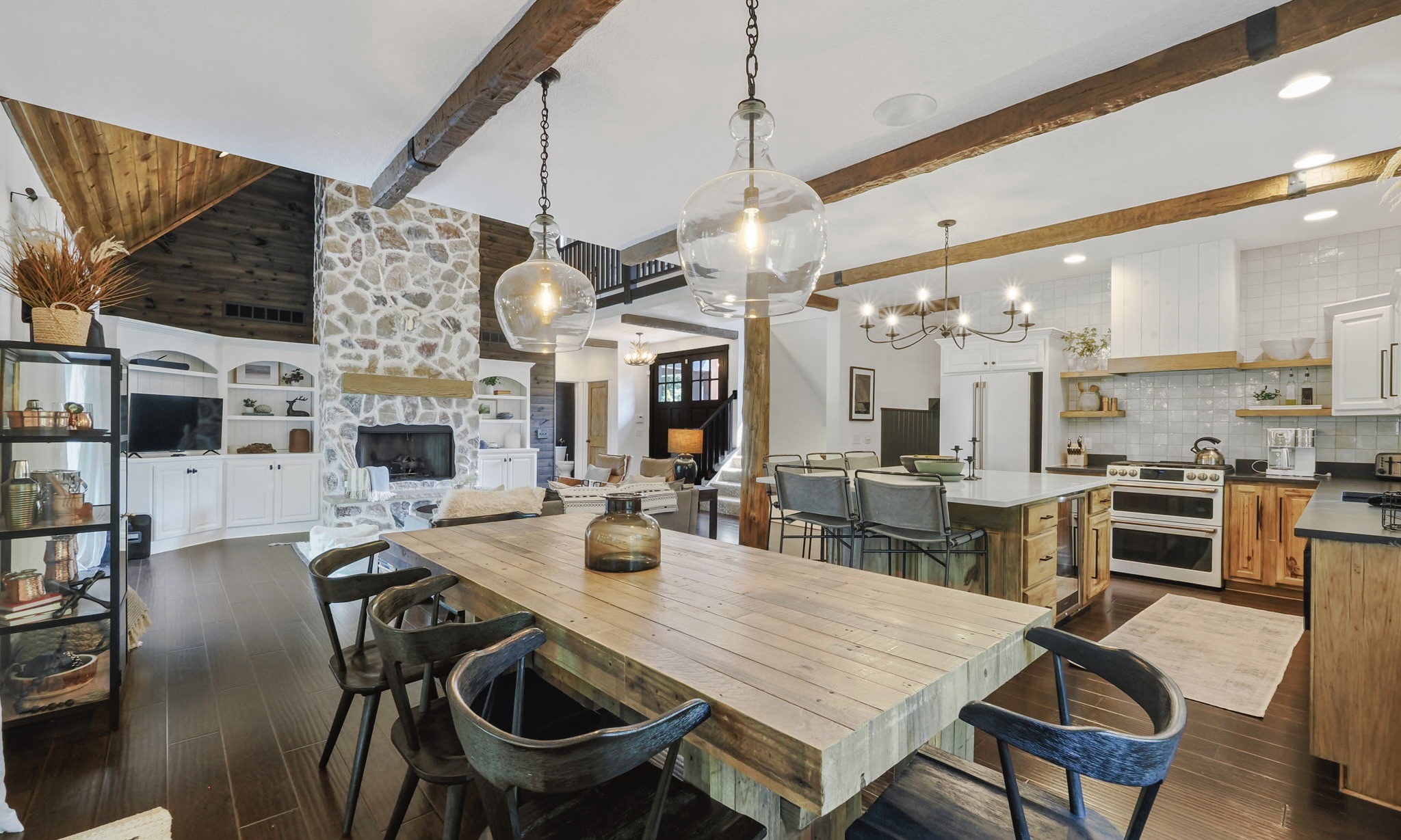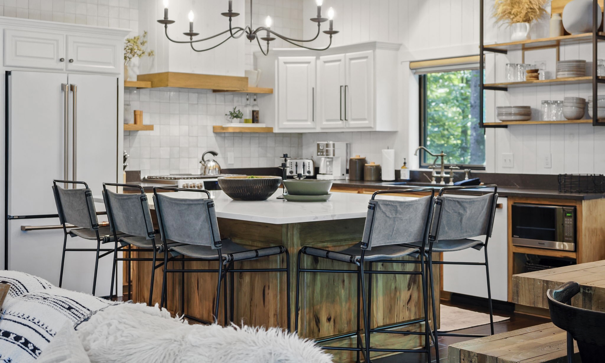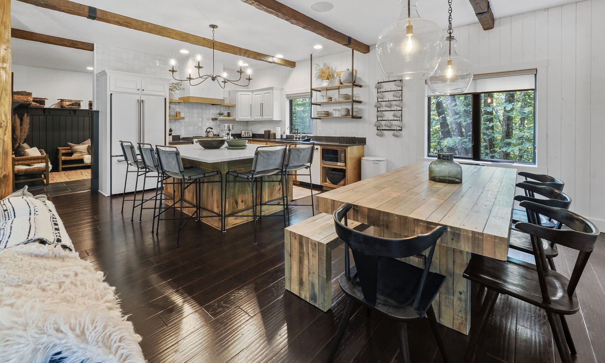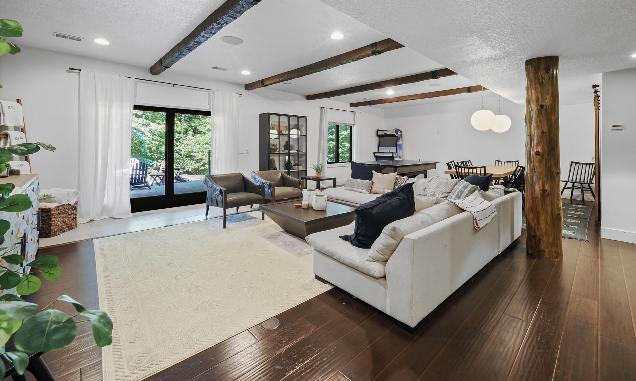 This highly customized home has custom ski storage, gas burning outdoor fire-pit, surround sound throughout the home, bumper pool table, PLUS two large living rooms, allowing everyone in the group to make themselves right at home. For special note, a brand new hot tub has been installed February 2021 and we look forward to guests enjoying this favorite amenity! Speaking of feeling at home, enjoy the spacious kitchen with seating at the dining room table for 10 PLUS 6 bar stools surrounding the oversized island. There is also a 3 season room just off of the dining area with additional seating and amazing views tucked in the beautiful wooded area that surrounds the home.
