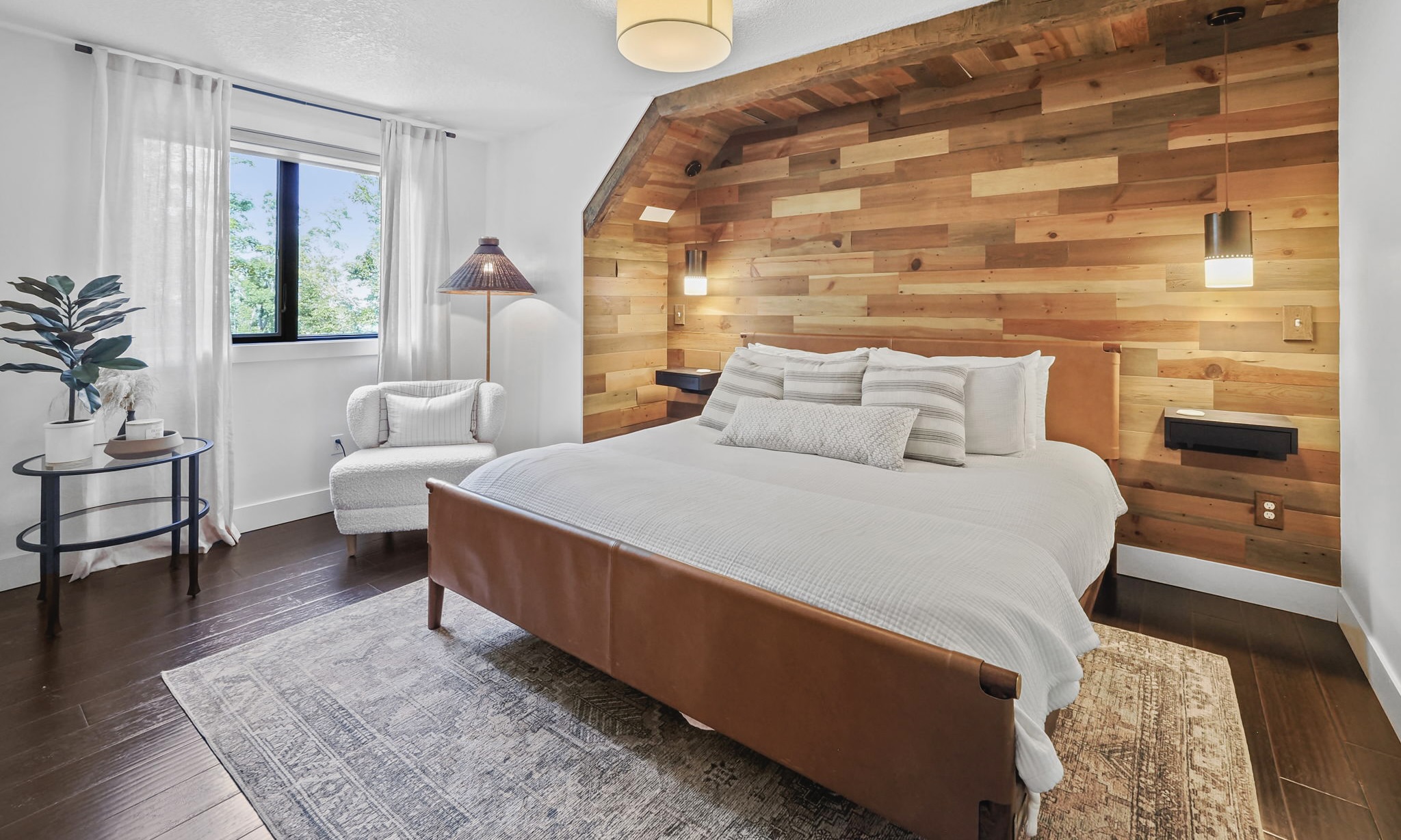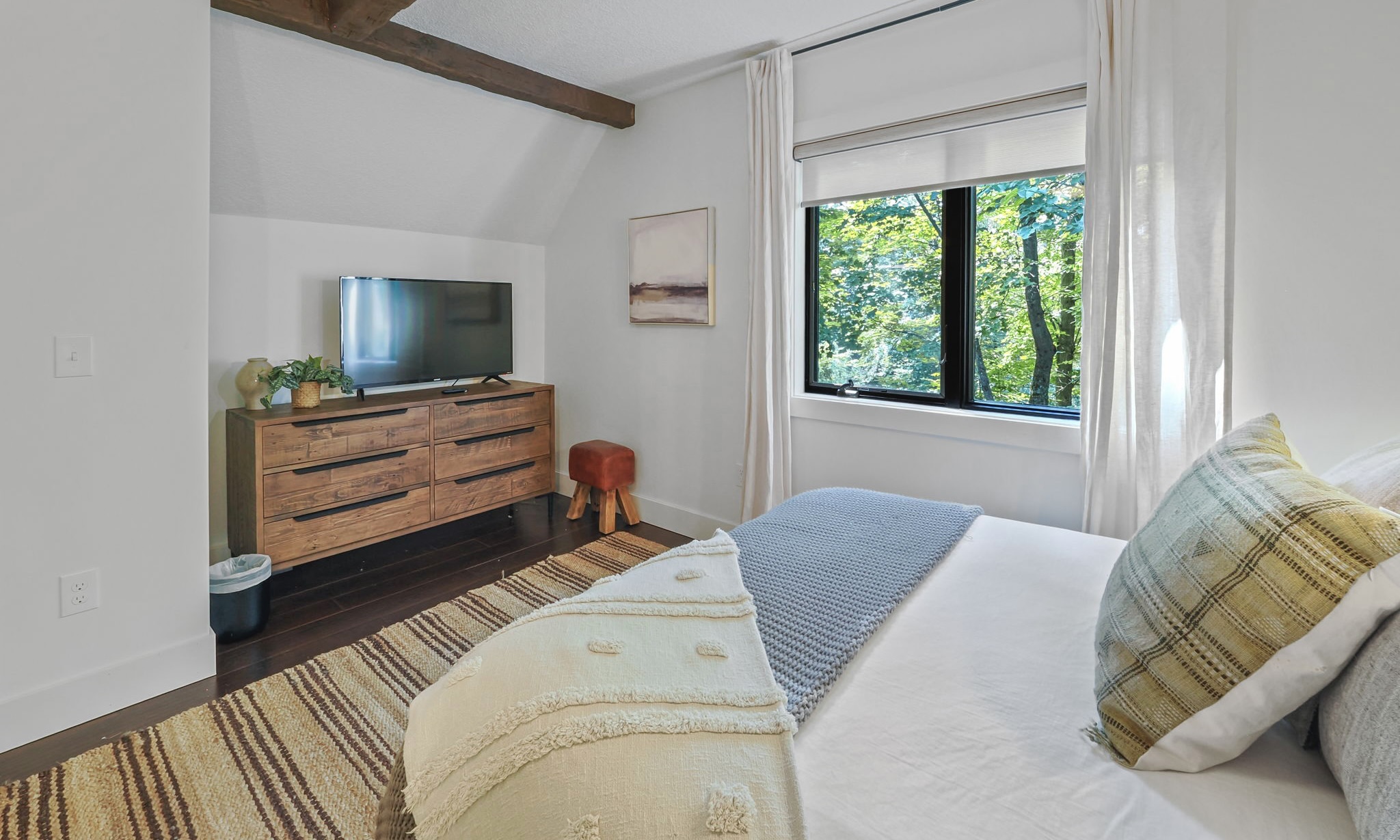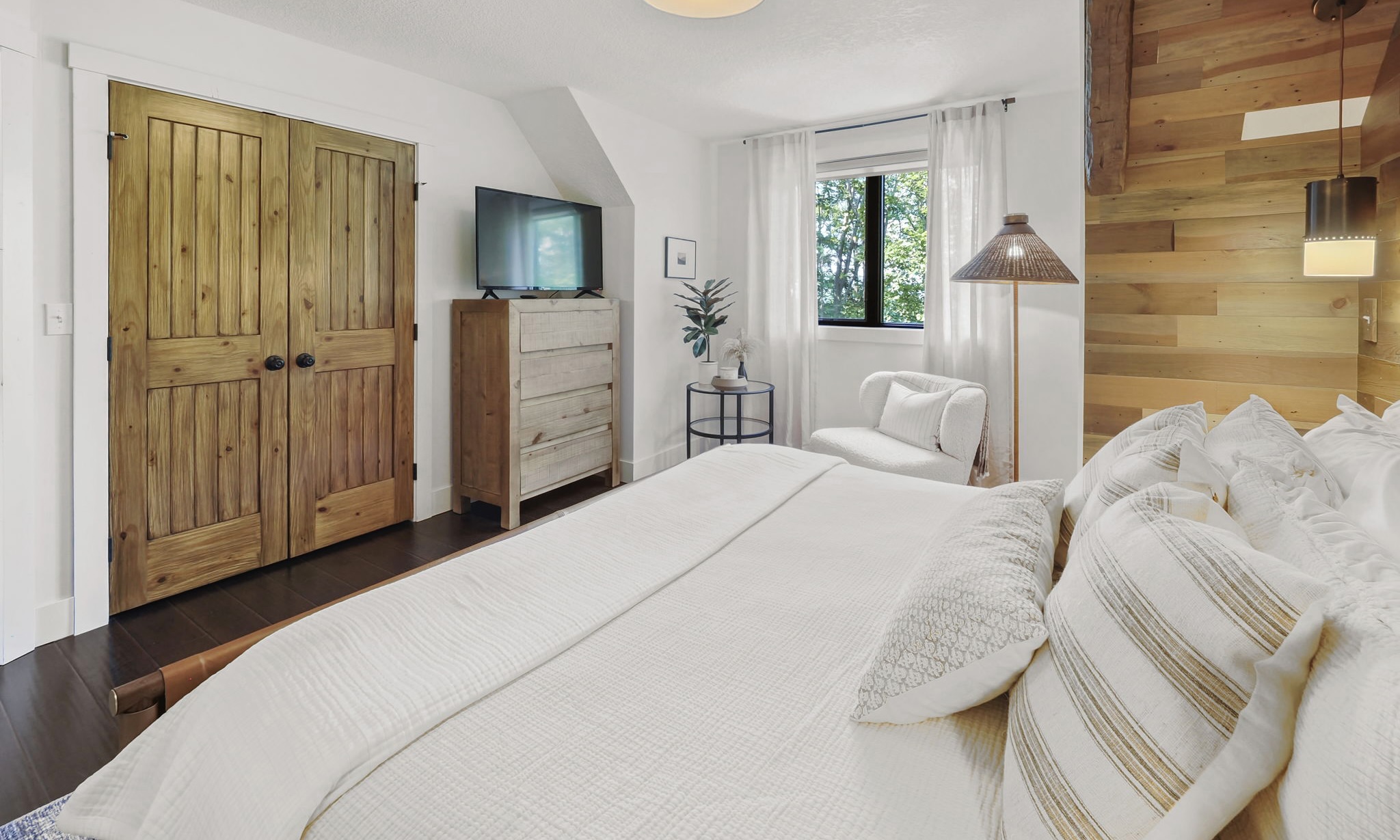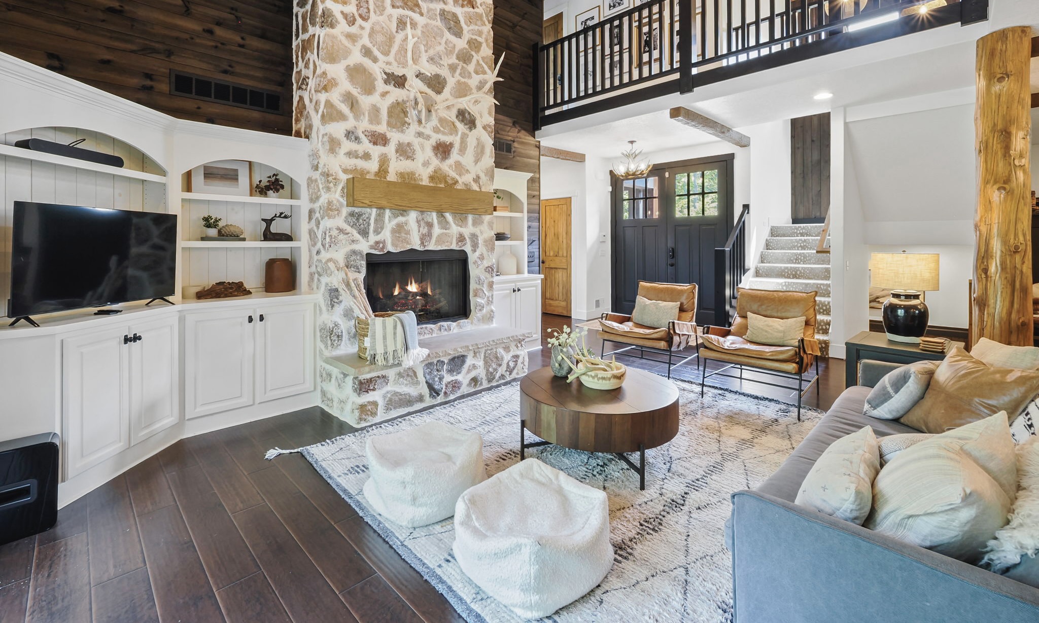 The main level living area has abundant seating, a vaulted ceiling, gas fireplace, and a flat screen TV. For added convenience, there is a powder room located off the main living area. The master bedroom hosts a king bed, en suite bathroom with double sinks and granite countertops. And for added luxury and touch, enjoy your private gas fireplace and flat screen TV, in this beautiful master bedroom!