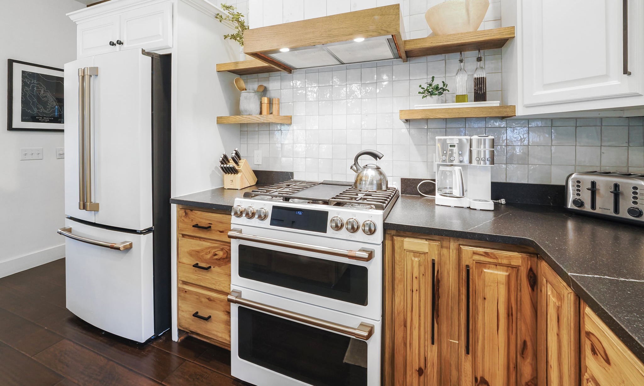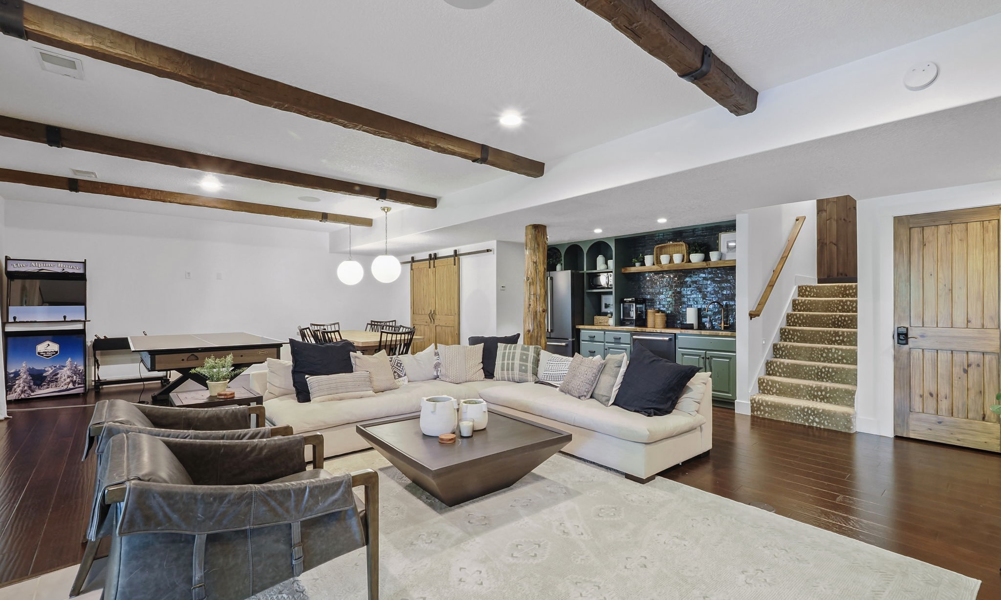 The Alpine House has everything you've been looking for this getaway! This beautiful 4 bedroom private home has been recently redecorated and it is located in the gated community at Boyne Mountain. Incredibly spacious, there is an abundance of gathering space and seating areas for your entire group. The home is literally STEPS away from the Alpine chairlift. Simply imagine your family and friends as you sit in the living room, watching the snow fall and the chairlift pass by! As an added convenience, this home is about 200 yards away from the top of the mountain where the Alpine and the Disciples 8 chairlift all empty; Such easy access on and off of Boyne Mountain will make this property a favorite for you and your group, and one that you will want to build traditions in.