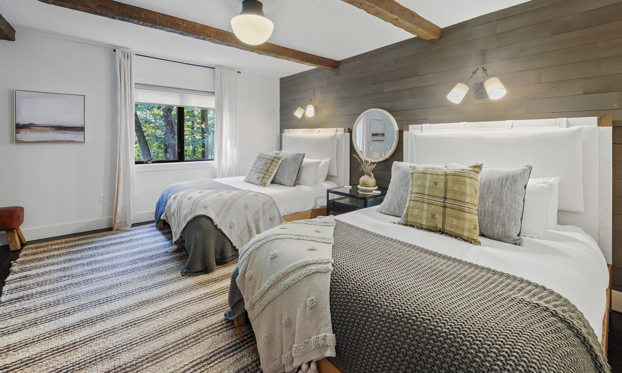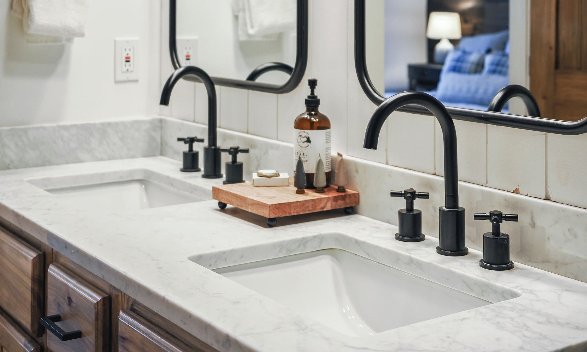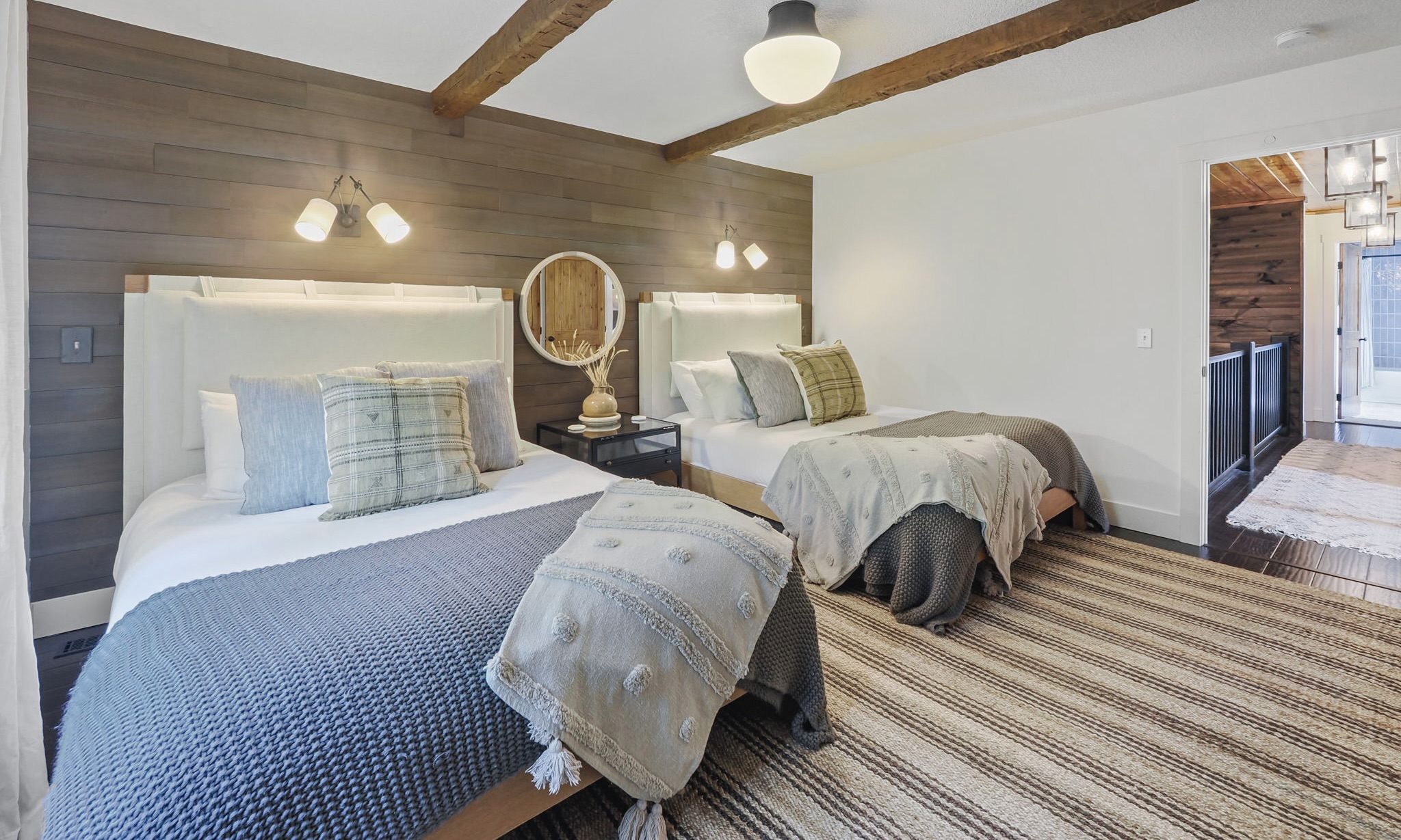 When you head upstairs where you will find 2 additional bedrooms; featuring a king bedroom, 2 Queen beds in the other bedroom and a shared full bathroom with double sinks and granite countertops. This is a bonus feature as it gives plenty of space for adults to have some quiet time, while the kids enjoy their own private area downstairs!